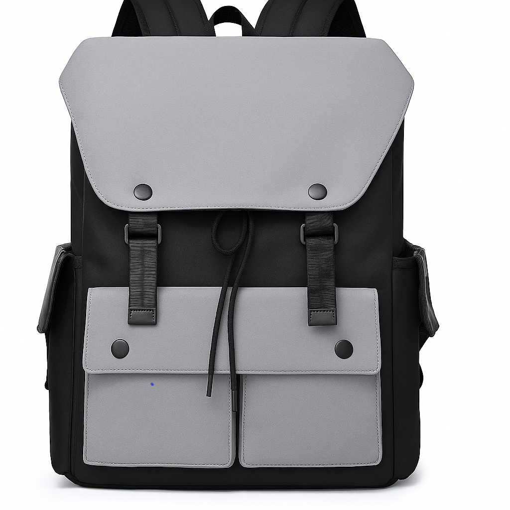 Elegante, resistente e incredibilmente pratico: questo zaino unisex dal design bicolore è la scelta ideale per chi cerca stile e funzionalità. La parte superiore è caratterizzata da una patta grigia chiusa con due fibbie decorative, che dona un tocco moderno e minimal. Il corpo principale, in nero, è robusto e strutturato, mentre la parte frontale è arricchita da due tasche capienti con bottoni automatici, perfette per riporre oggetti di uso quotidiano.Le spalline imbottite e regolabili garantiscono un comfort ottimale anche durante lunghi tragitti. I dettagli in cordino aggiungono un look urbano e dinamico, perfetto per studenti, lavoratori e viaggiatori.